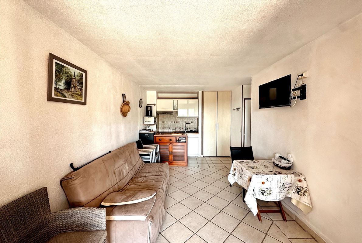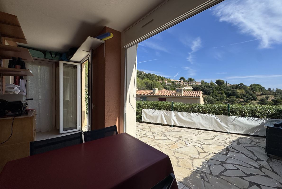Les Issambres - Breathtaking views of the Gulf of Saint-Tropez In a secure and prestigious estate, boasting two superb swimming pools, a tennis court, a pétanque court, a multi-sports court, a children's playground, and more... Discover this charming 2-room apartment of 43.55m² (34.68m² living space) offering exceptional views of the Mediterranean Sea and the surrounding hills. The apartment comprises an enclosed loggia, a bright living room with a fitted kitchen, a shower room, a separate WC, a bedroom, and an office space or additional sleeping area. The outdoor space includes a beautiful 29m² south-facing terrace, allowing you to fully enjoy the unique panoramic views of the Gulf of Saint-Tropez.