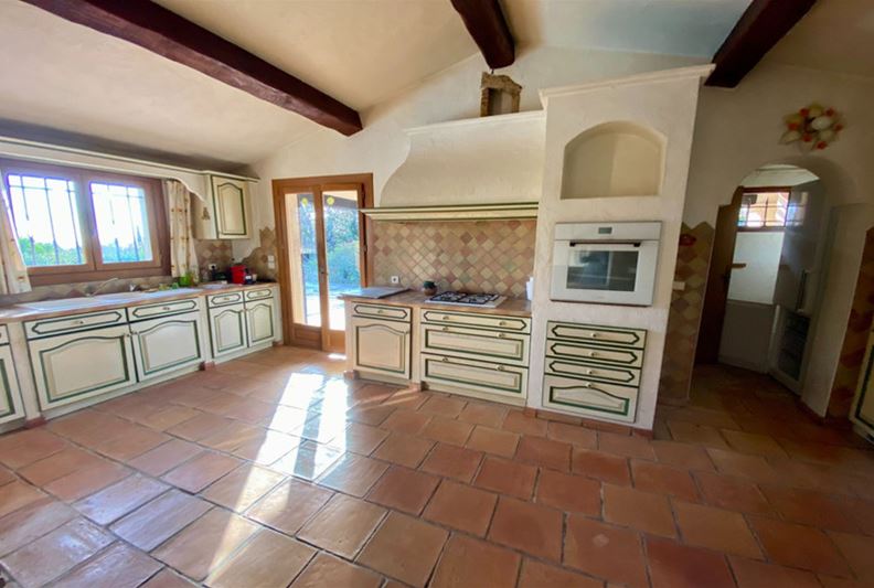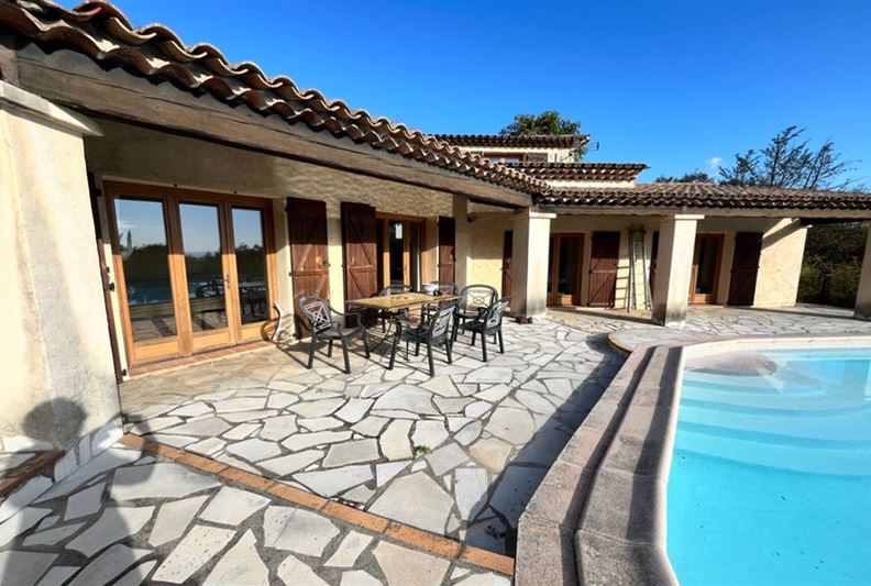 To the west of the village of Tourrettes sur Loup, in absolute tranquility, set in a green haven, a charming Provençal-style home of traditional and high-quality construction, mostly on one level, comprising: entrance hall, double living room with fireplace, spacious open-plan fitted kitchen, three bedrooms each with closets and shower room, full bathroom and separate toilet. Upstairs: master bedroom with closets, shower room/toilet, opening onto a rooftop terrace with an unobstructed sea view. Large swimming pool, covered terrace, double garage, parking spaces, all set on a landscaped plot of approximately 3100 m².