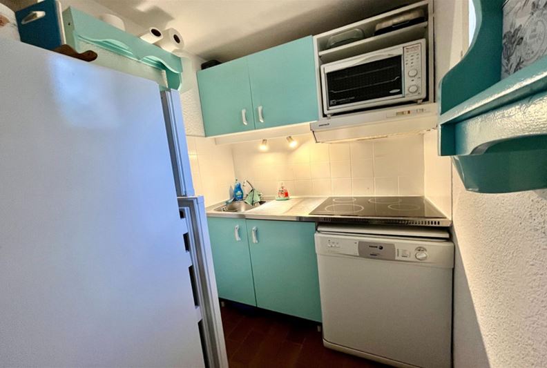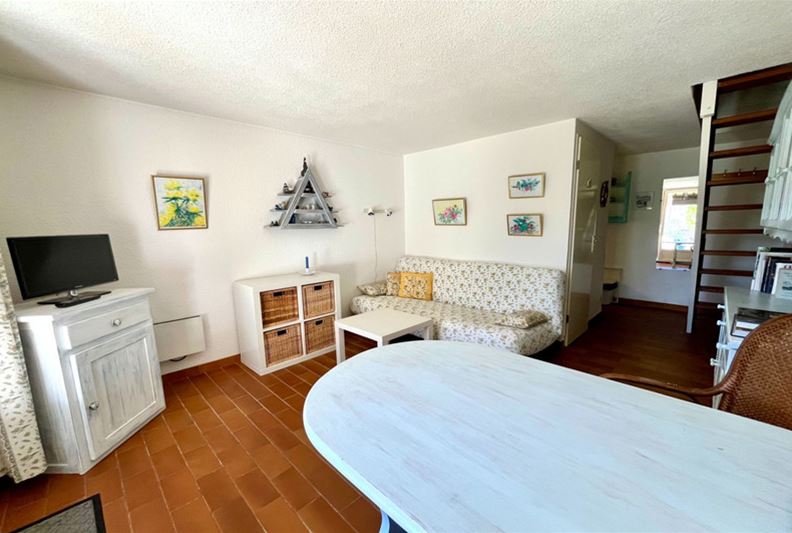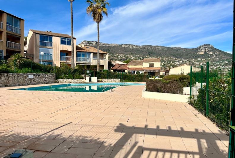 VENCE in a highly sought-after residence with a swimming pool and recreational areas, charming small semi-detached villa of type T3. The accommodation is laid out as follows: living room, kitchenette, separate WC. Upstairs, landing with storage, two bedrooms, bathroom. Spacious corner terrace. One outdoor parking space.