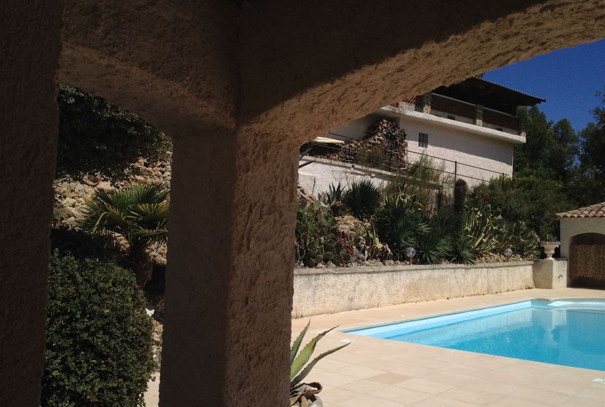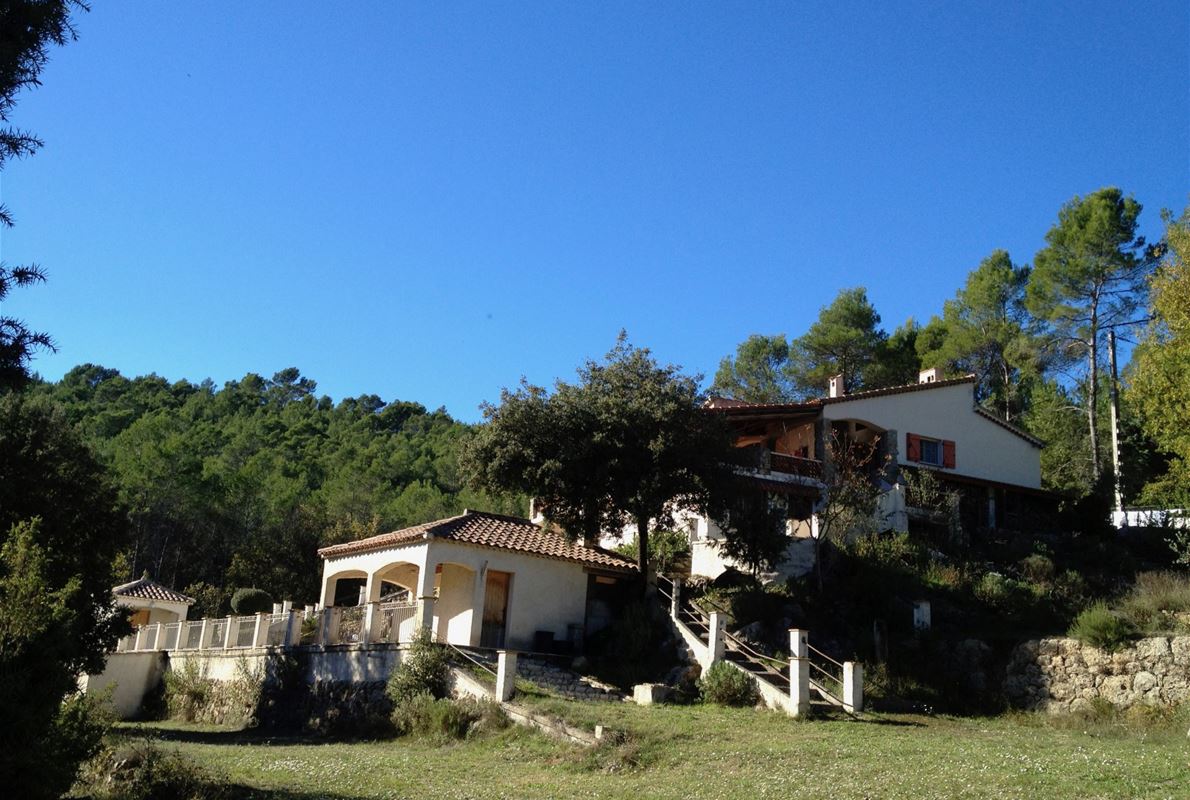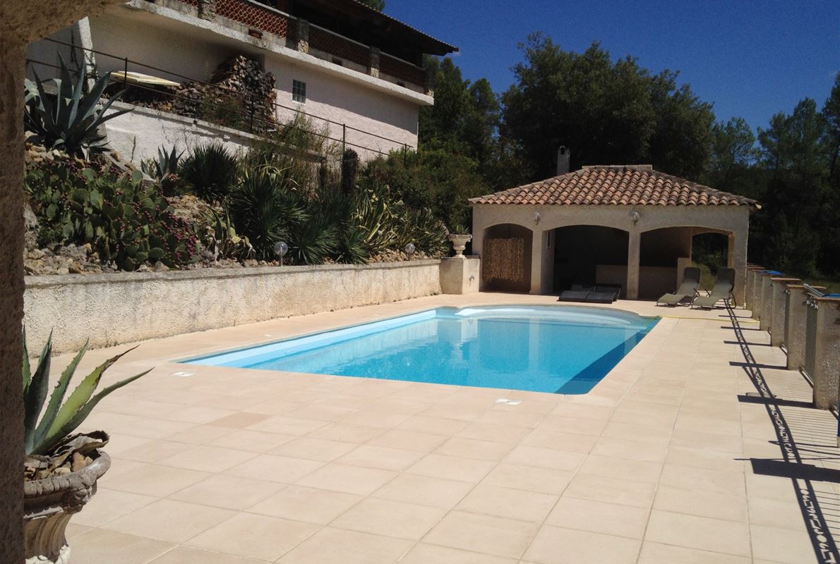 This house, located in a nice area on a plot of over 2700m2 offers a large kitchen entrance, dining room, open lounge on a beautiful covered terrace and a large terrace overlooking the pool. There are 2 good-size bedrooms and a bathroom. With independent entrance there is still a large room with the possibility to make also a bathroom. A very large pool with its beach and poolhouse, plus a carport 6 cars. Located in a quiet area, not far from the pleasant village of St Antonin du Var.