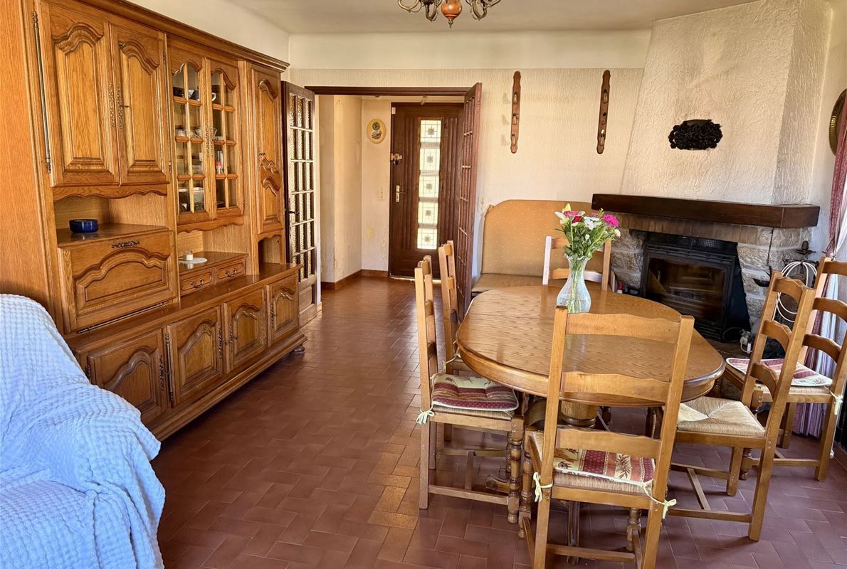 Located just a few minutes from the village center and its shops. On the ground floor, you will find: - A welcoming porch and an entrance hall with a separate wc. - A bright living room featuring an insert fireplace, providing direct access to two terraces, one of which is partially covered, perfect for enjoying sunny days. - A fitted kitchen with a practical pantry for optimal storage. - Three spacious bedrooms with built-in wardrobes, one of which also opens onto the terrace. - A shower room . The basement, with over 90 m², includes: - A garage for your vehicle. - A large workshop space for your creative or DIY projects. - A boiler room. - A cellar for storage.