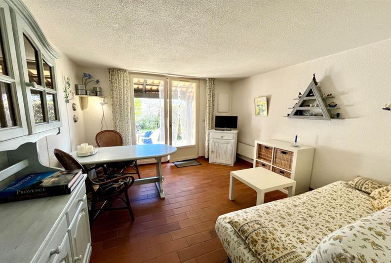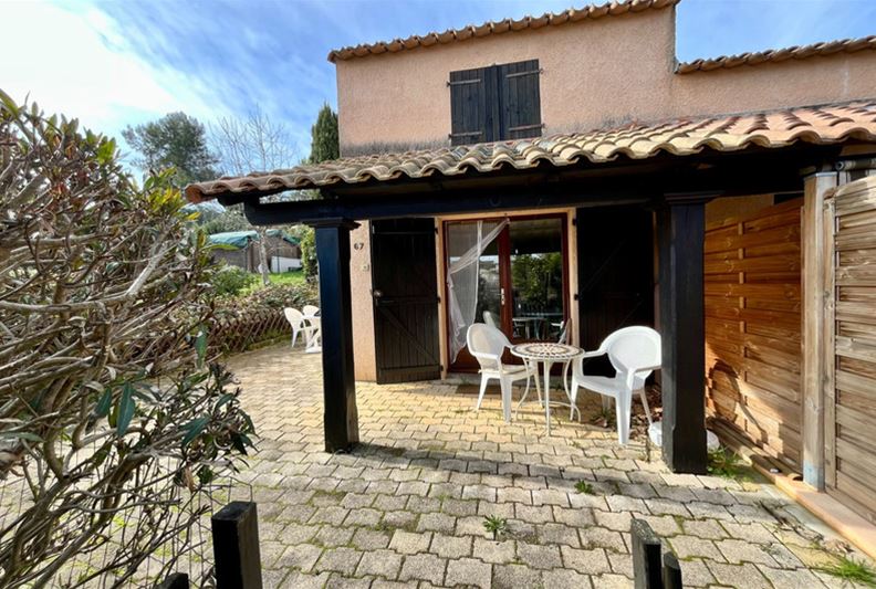 VENCE in a highly sought-after residence with a swimming pool and recreational areas, charming small semi-detached villa of type T3. The accommodation is laid out as follows: living room, kitchenette, separate WC. Upstairs, landing with storage, two bedrooms, bathroom. Spacious corner terrace. One outdoor parking space.